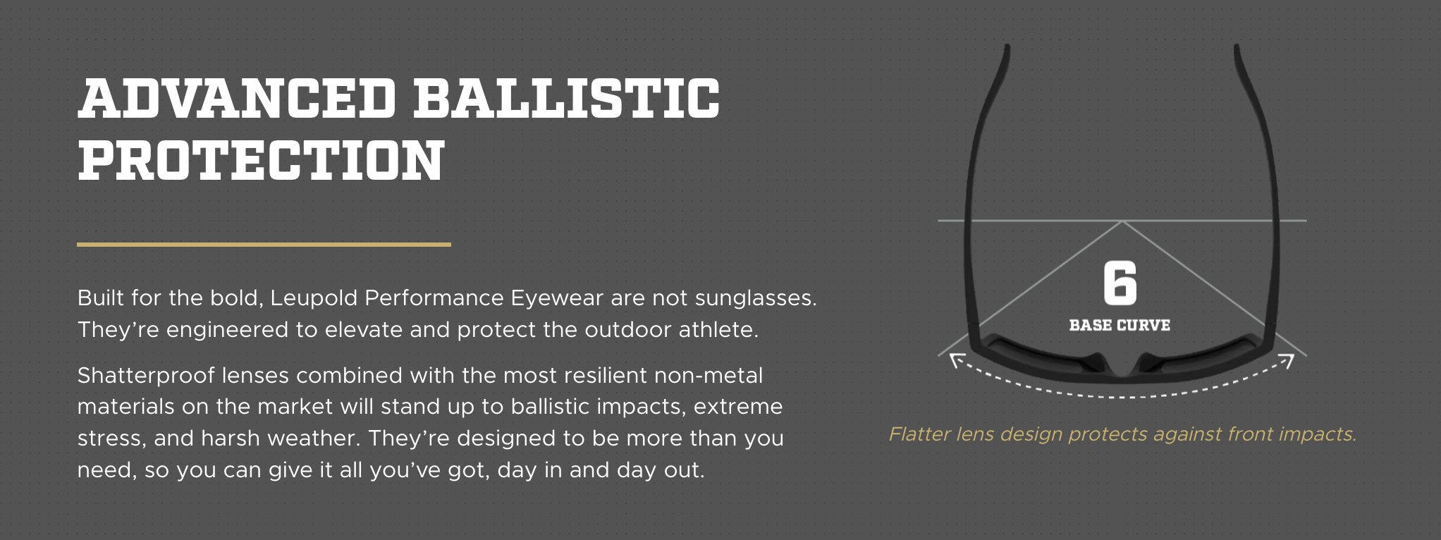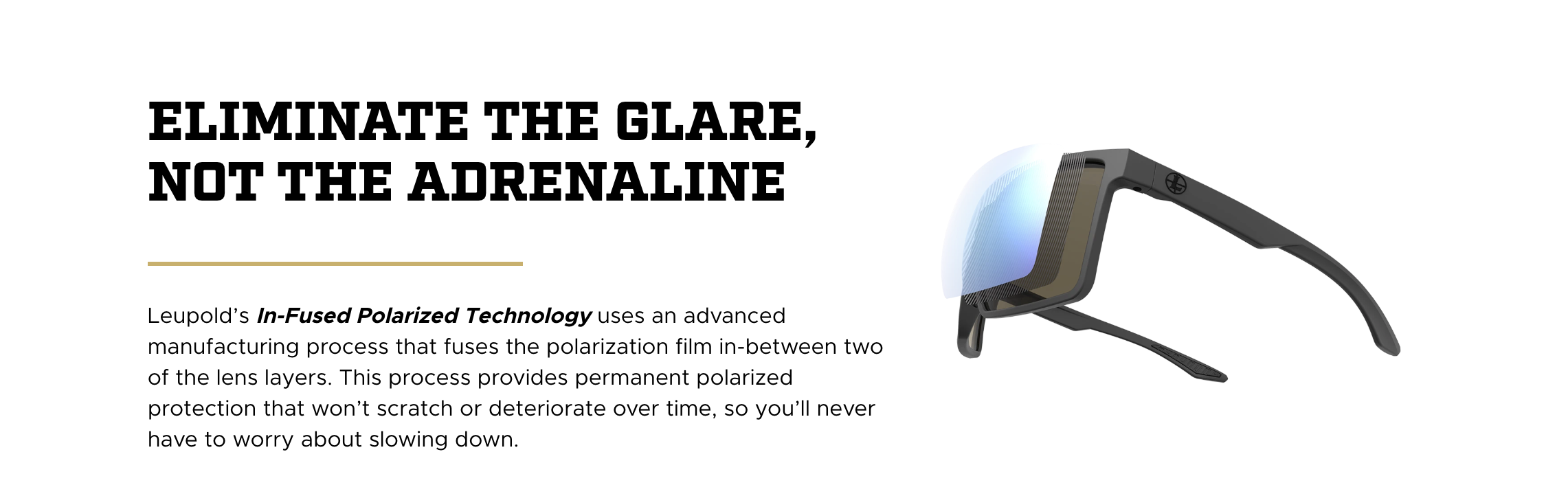 Whether it’s single digits and sunny or 90 degrees and humid, you don’t back down because of weather. We built the Bridger performance eyewear to keep up with competitors like you. Its lightweight, shatterproof design is strong enough to survive your off-grid adventures and sleek enough to match your active lifestyle. Wherever you go, and whatever you do, its ballistic-rated, In-Fused polarized lenses will eliminate glare so you can focus on your next step.