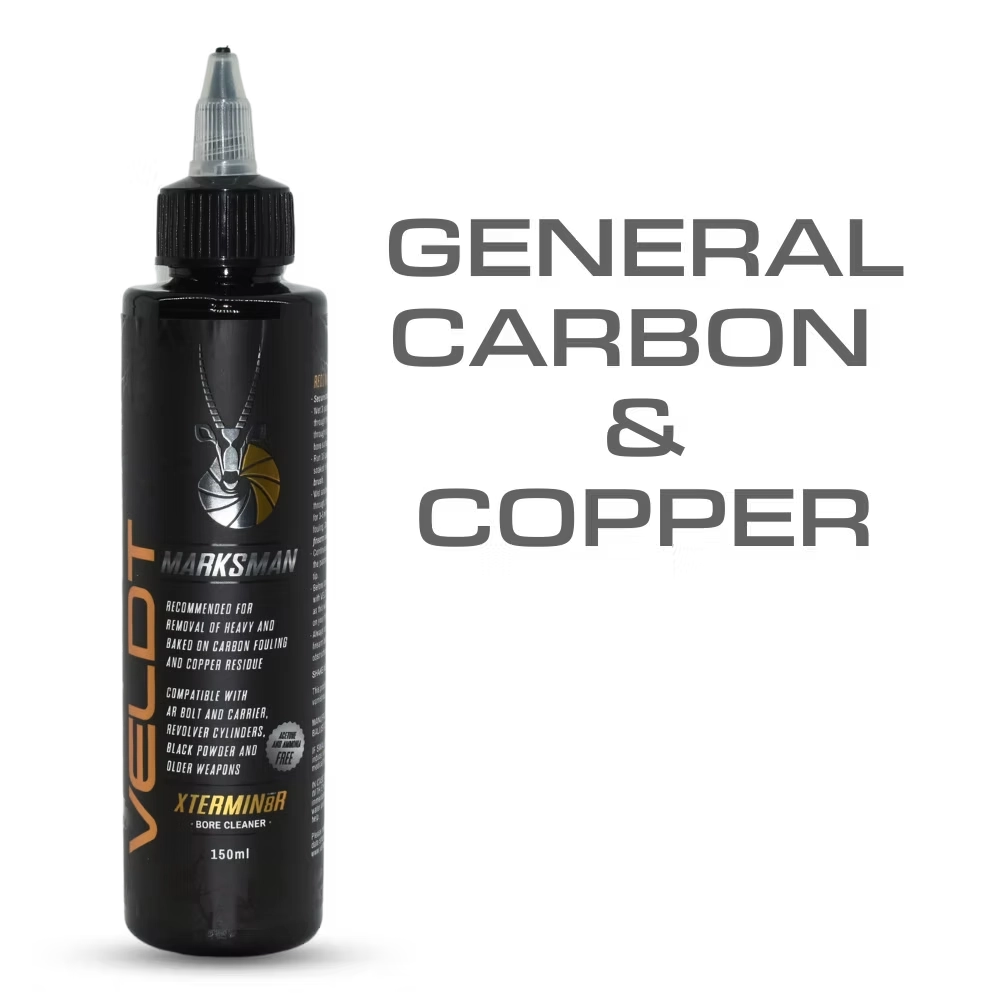 XTERMIN8R is formulated to chemically act on heavy layers of carbon, copper, nitro, moly and lead and is one of the best all-round cleaners in the VELDT MARKSMAN arsenal.