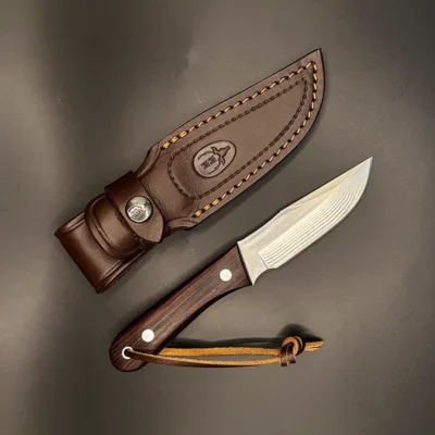 The Muela Bison-9NL is a versatile fixed-blade hunting knife featuring a 90mm(3.54 inch) Moly-vanadium stainless steel (X50CrMoV15) blade with a satin finish.It has a full tang for durability, an ergonomic handle with kingwood scales, and includes a protective leather sheath. Designed for outdoor and hunting activities, it is a durable and reliable tool for tasks like skinning and general use.