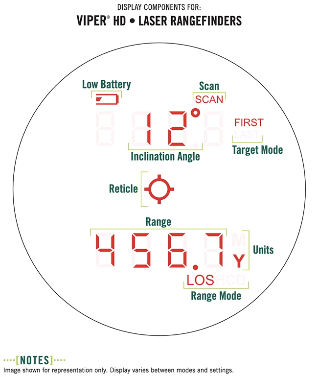 –              Last Mode Displays the farthest distance when ranging. Ideal for ranging a specific target behind a group of objects like brush, trees, rocks, etc.