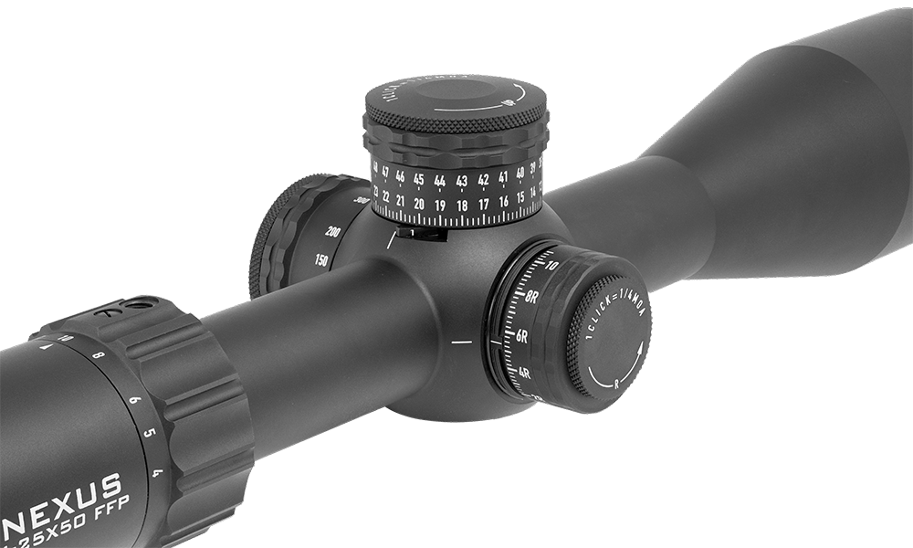 - Tool-free Resettable Turrets with 10 MRAD / 25 MOA per Revolution