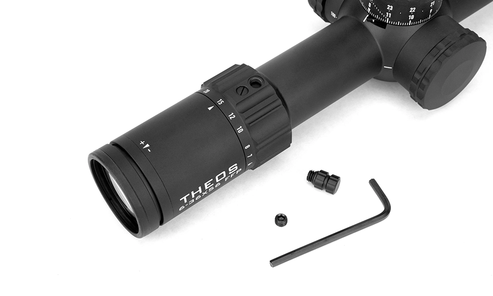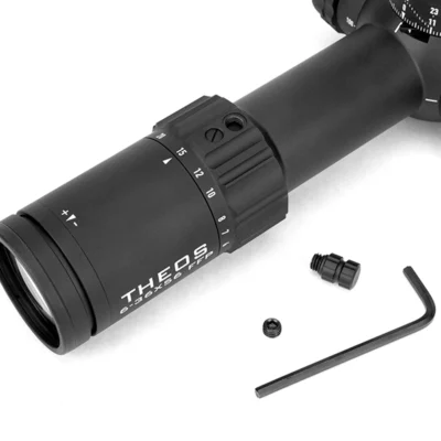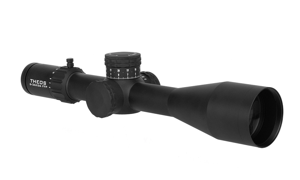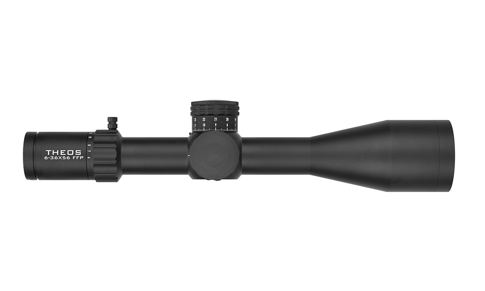 THEOS has entered the room – Created through a three year process of meticulous planning, careful crafting and brutal testing. With a completely re-engineered turret system, digital illumination control and a magnification range of 6-36x, we’ve raised the bar governing what a flagship should be and placed the Theos firmly on the throne. New features on this model include a revolution flag that provides a visual indication when you pass a full turn, a new zero-stop mechanism that requires no tools, a digital illumination that clears up space around the parallax knob, and an aperture ring that manipulates the depth of field when needed.