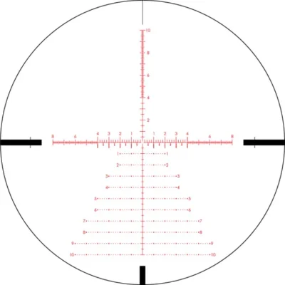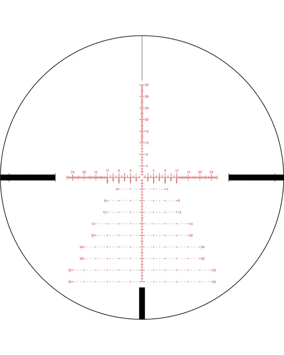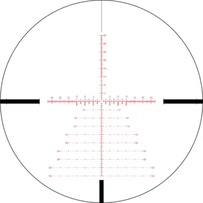 FIRST FOCAL PLANE RETICLE A first focal plane reticle is located within the riflescope near the windage and elevation turrets. The scale of reticle remains in proportion to the zoomed image. Constant subtensions allow accurate holdover and ranging at all magnifications. The reticle’s size will appear larger at high magnifications and smaller at low magnification.