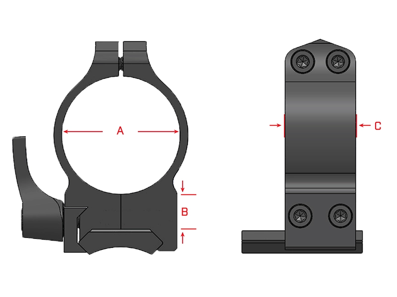 • Rings securely mount around scope using 4 Torx style T-15 socket cap screws.