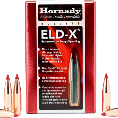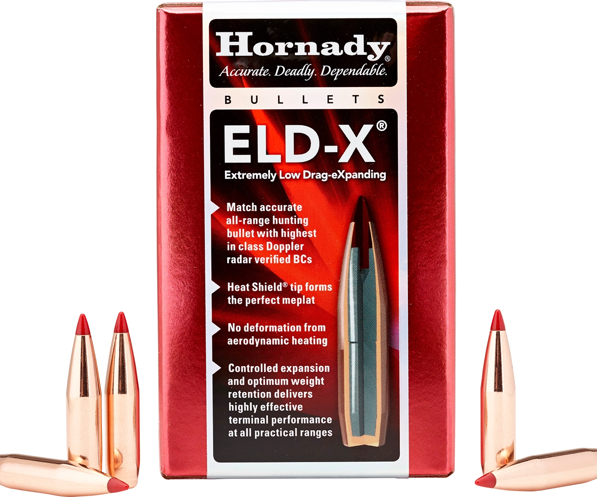 The ELD‑X® (Extremely Low Drag ‑ eXpanding) bullet is a technologically advanced, match accurate, ALL‑RANGE hunting bullet featuring highest‑in‑class ballistic coefficients and consistent, controlled expansion at ALL practical hunting distances.