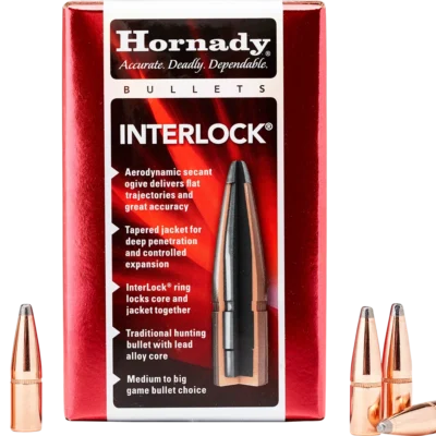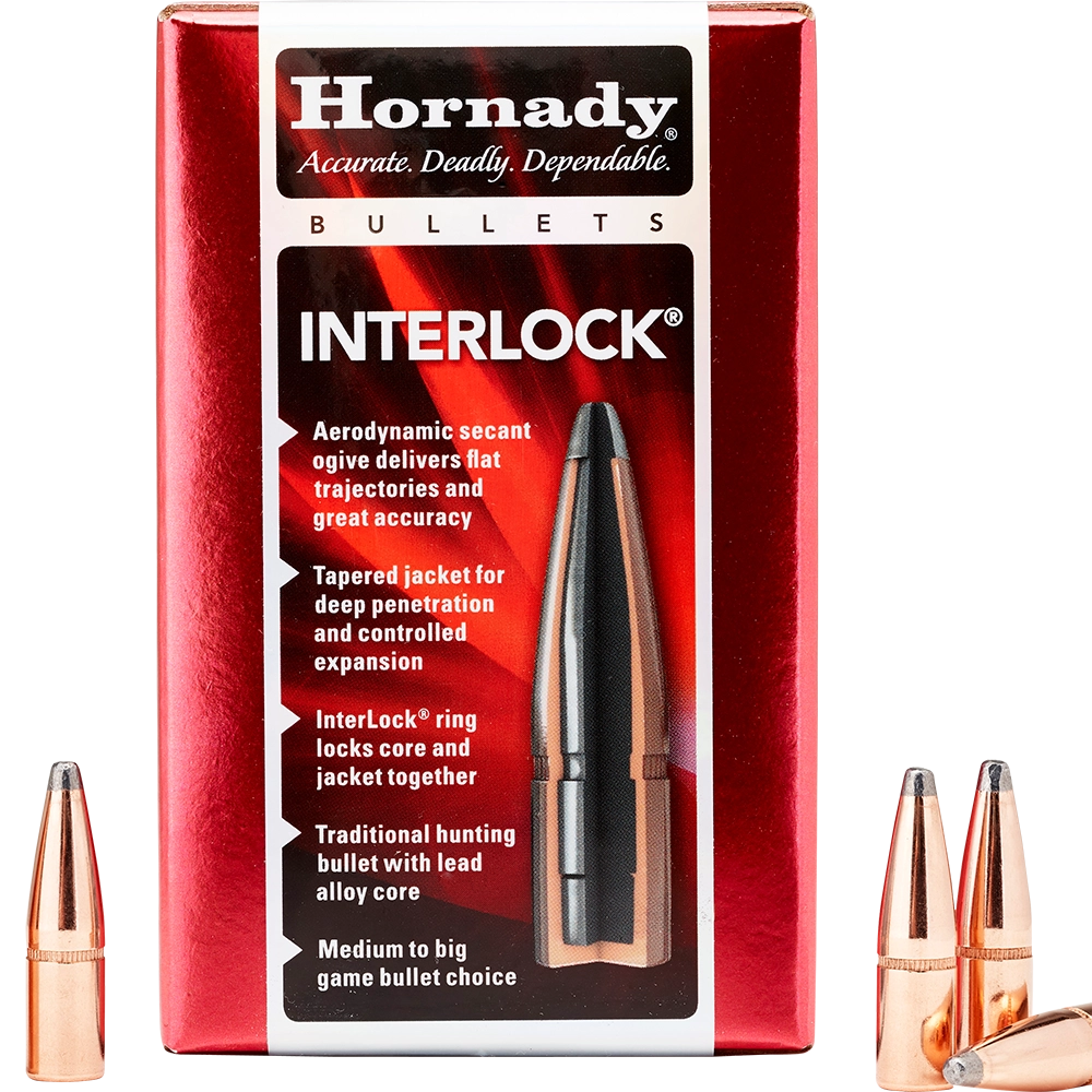 The INTERLOCK is our traditional line of bullets feature exposed lead tips for controlled expansion and hard‑hitting terminal performance. Most have our pioneering secant ogive design — one of the most ballistically efficient profiles ever developed (see diagram to right). Most feature our exclusive InterLock® design — a raised ring inside the jacket that is embedded in the bullet’s core that keeps the core and jacket locked together during expansion to retain mass and energy.