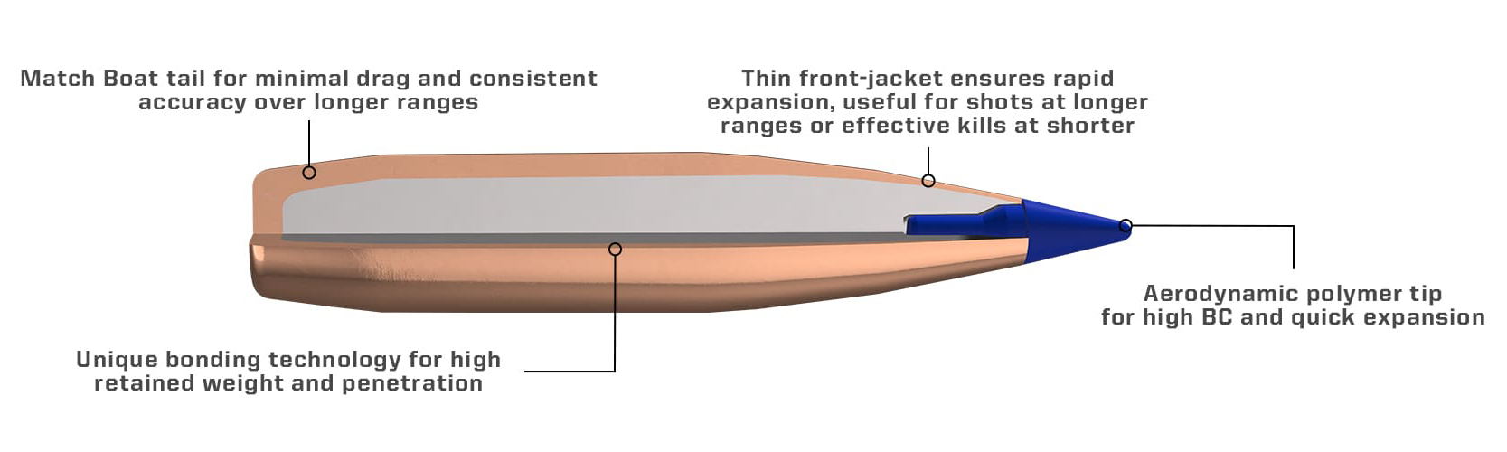 Norma Bondstrike is an advanced hunting cartridge design, based on a bonded boat-tail bullet with ballistic tip for extreme performance at the highest possible ranges.